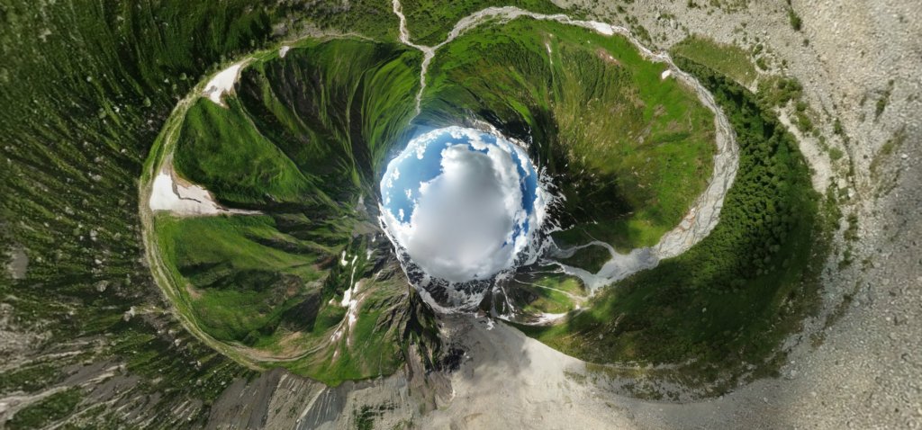 Сферична панорама над Глетчера Шкхара, линк под снимката