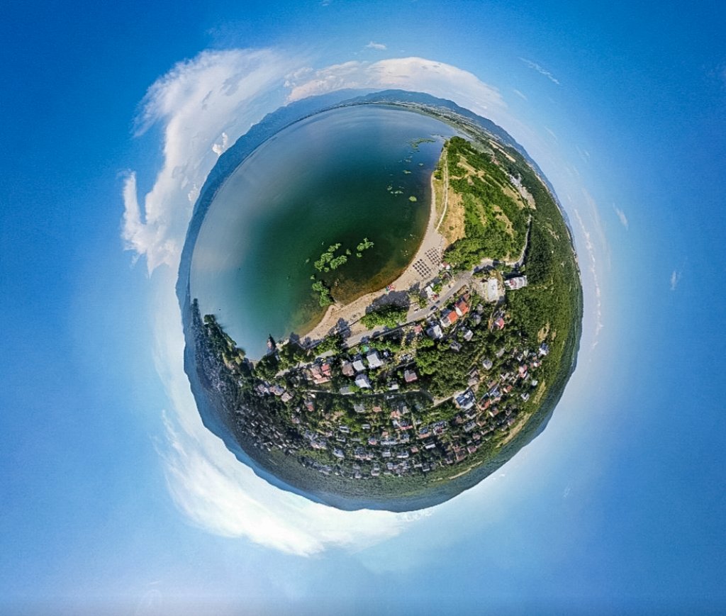 Сферична панорама на езерото Керкини линк под снимката
