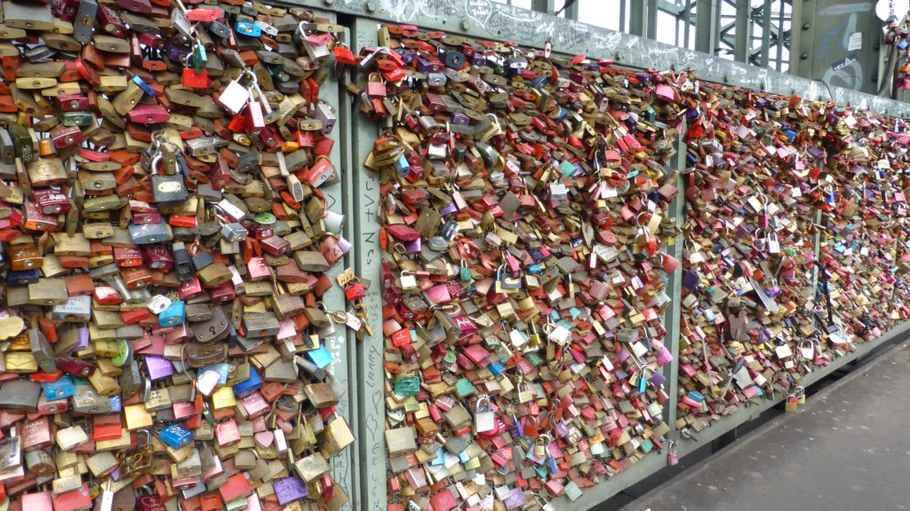Катинари заключващи любовта на моста над река Рейн