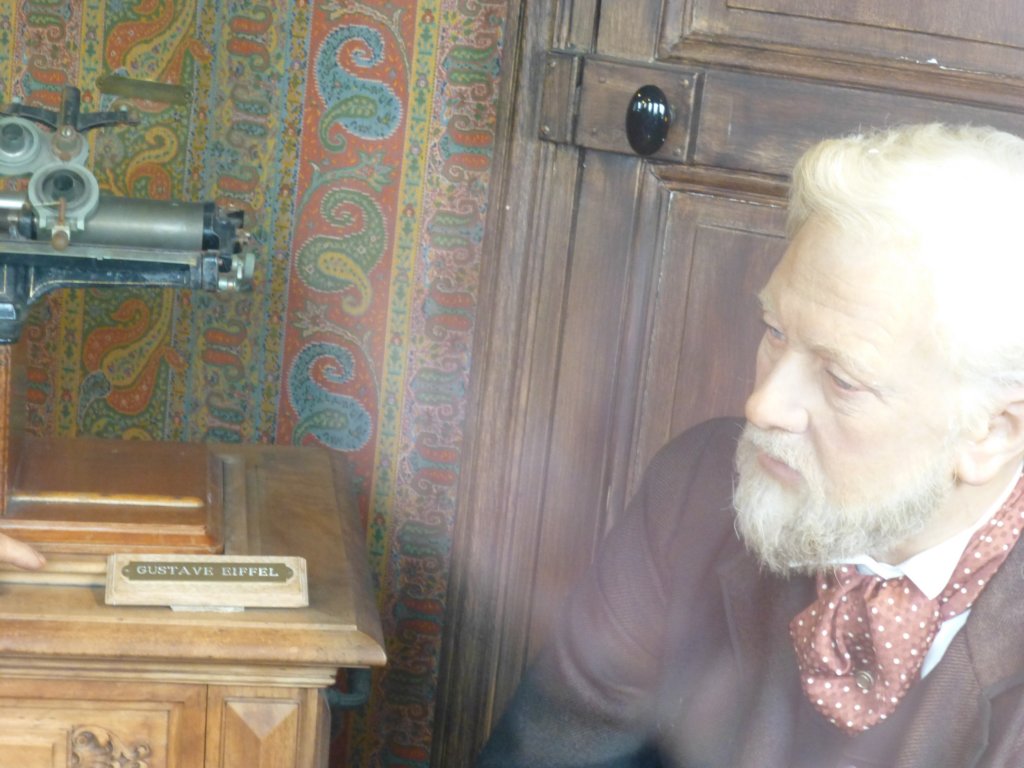 От ляво Томас Едисън в дясно Густав Айфел в кабинета на върха на кулата