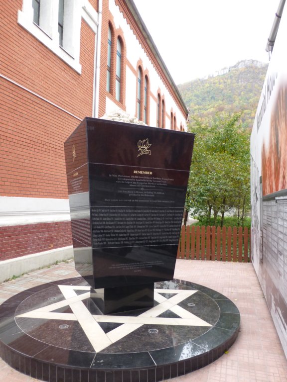 Монумент в двора на синагогата в Брашов в памет на загиналите евреи