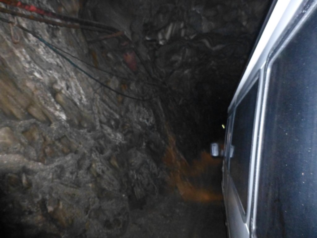 Тунелът в началото е тесен, а по земята има вода