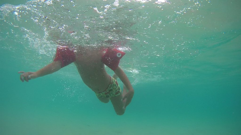 Алики, Боби плува с плувките до шамандурата