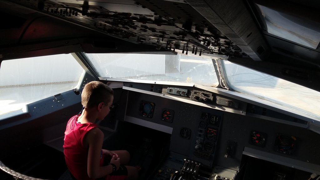 Боби в пилотската кабина на самолета кафене