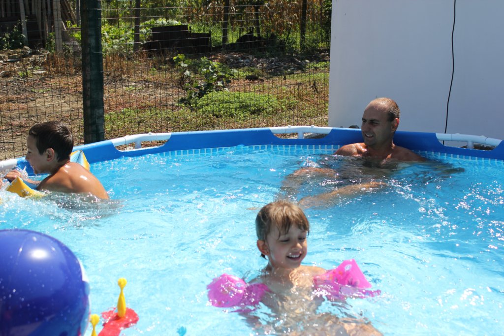 Боби се учи да плува с плувки
